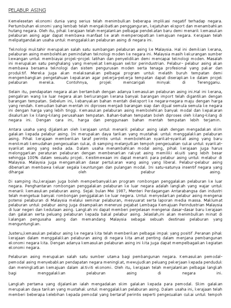Faktor-Faktor Yang Menggalakkan Pelaburan Asing Di Malaysia Disemak dan dikemaskini pada pukul 726 am 8 Mei 2020 Tajuk yang berkaitan masyarakat dan negara selalu menjadi pilihan dalam soalan karangan Bahasa Melayu.