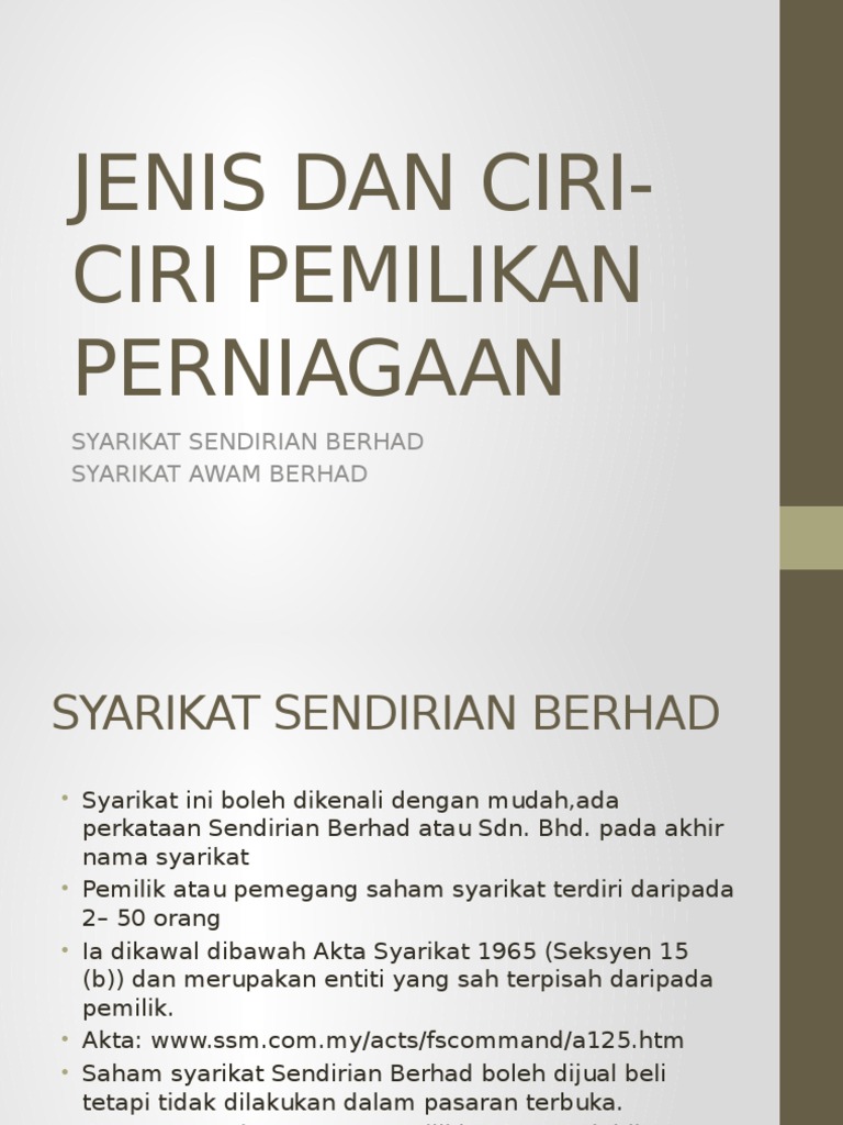 5 CIRI-CIRI SYARIKAT SDN BHD. 462018 Ciri-Ciri untuk Syarikat Sendirian Berhad. Ciri Syarikat Awam Berhad.